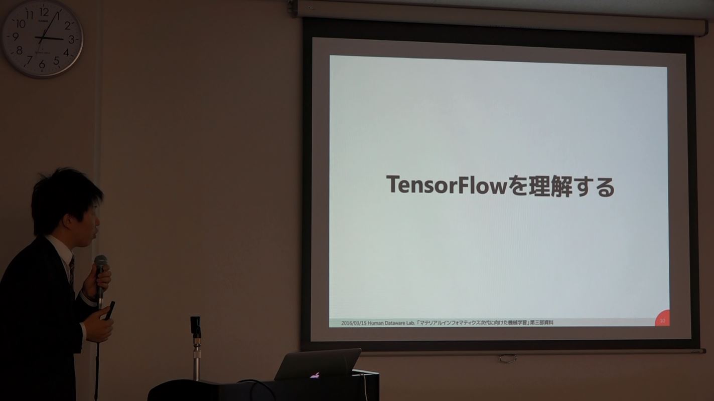まずはTensorFlow独特な概念であるTensorやOperation、Sessionについての解説を行いました。